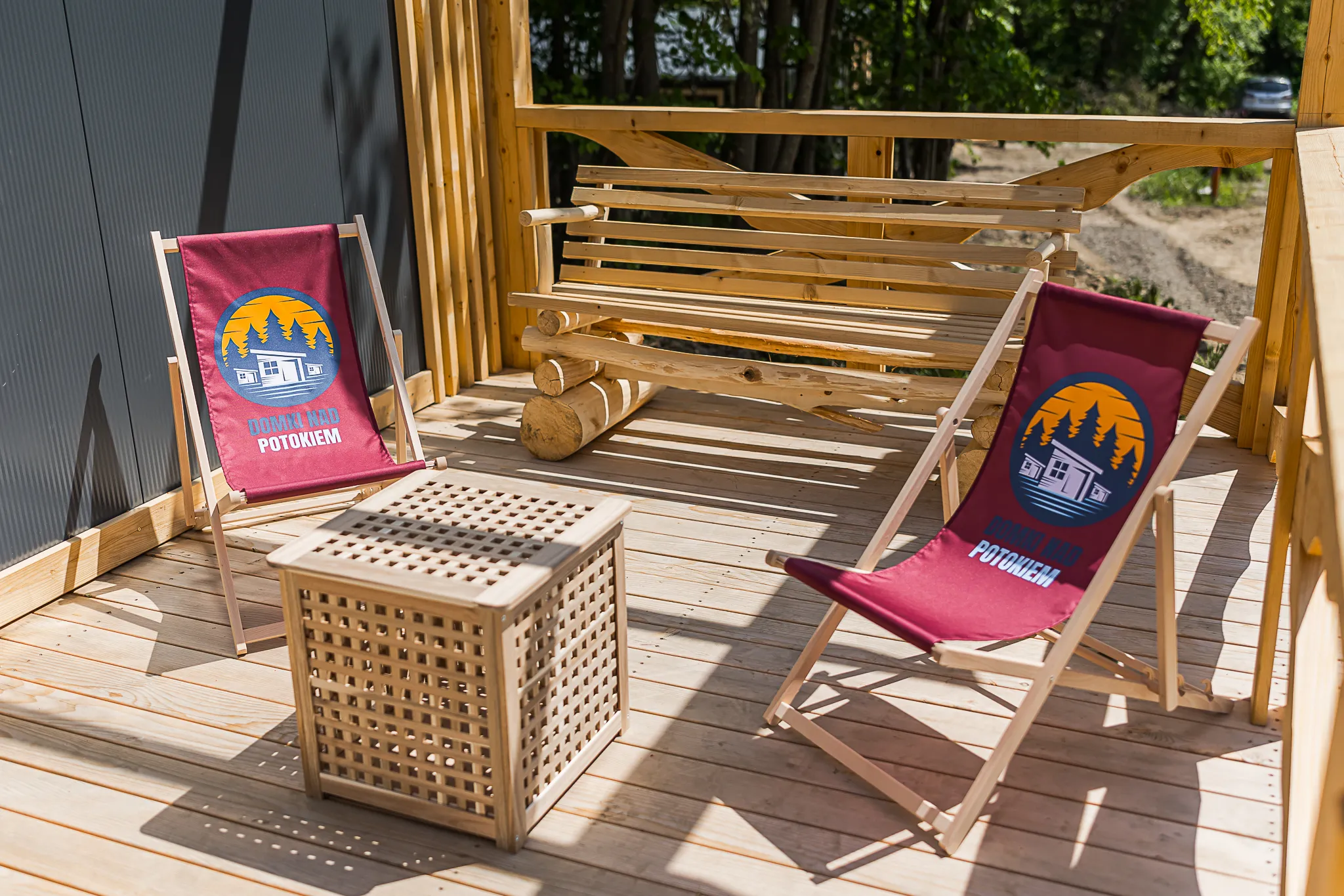Domki położone są tuż przy potoku, wśród zieleni, oferują nie tylko bliskość przyrody, ale także komfortowe wnętrza i przestronne, drewniane tarasy. To idealna przestrzeń, aby zwolnić tempo, nabrać oddechu i cieszyć się chwilą.