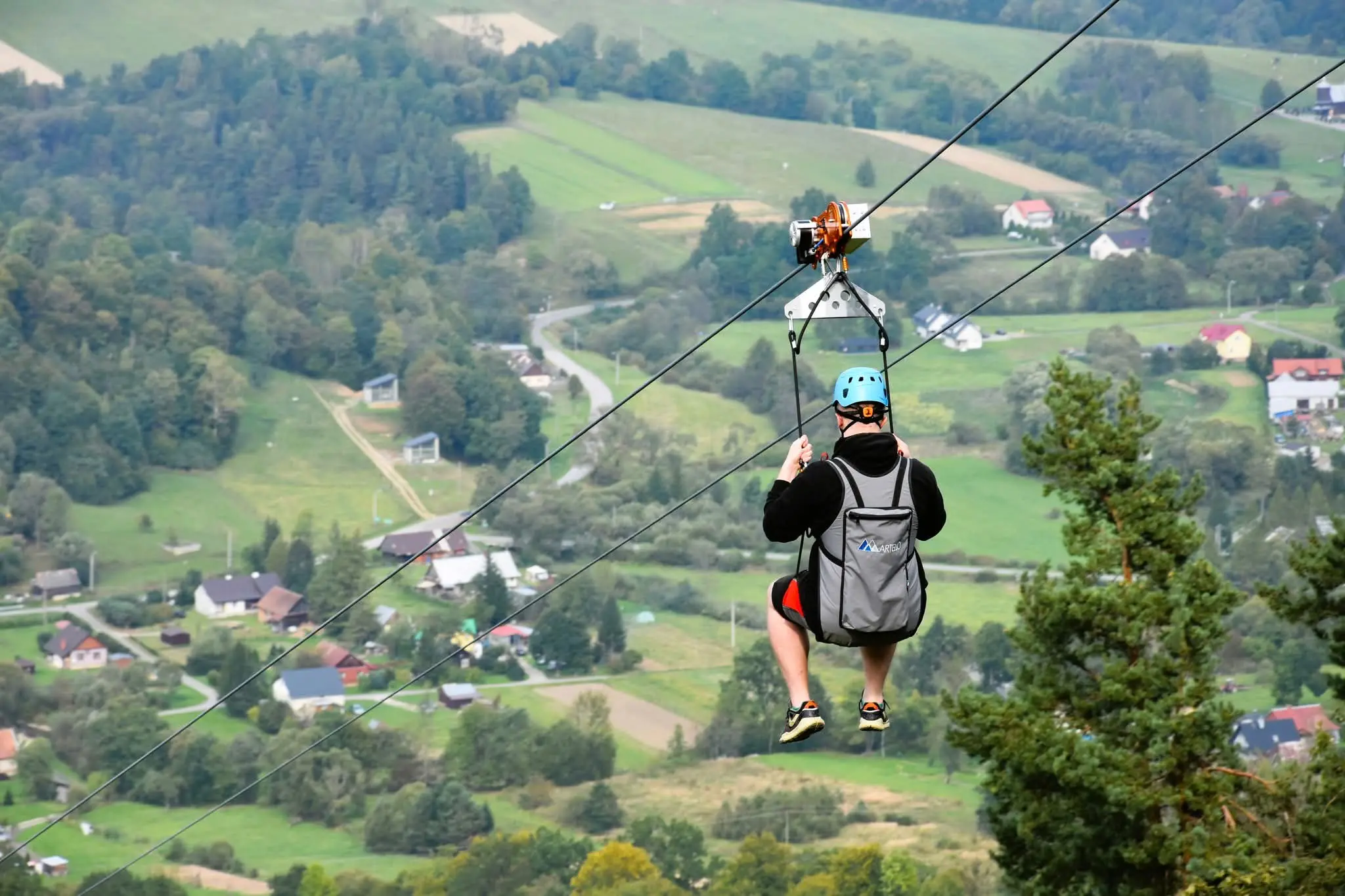 Zjazd Tyrolski w Ośrodku Narciarskim BIESZCZAD.ski Wańkowa to niezapomniana przygoda dla miłośników adrenaliny! To najdłuższa w Europie Środkowo-Wschodniej dwulinowa tyrolka – 1350 metrów długości, a miejscami nawet 48 metrów nad ziemią!