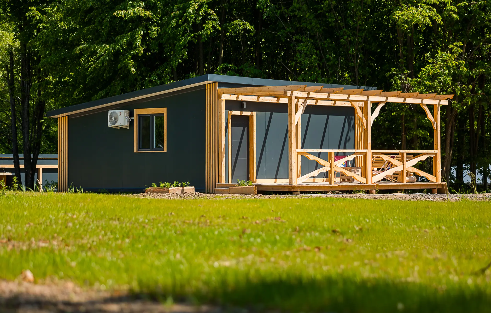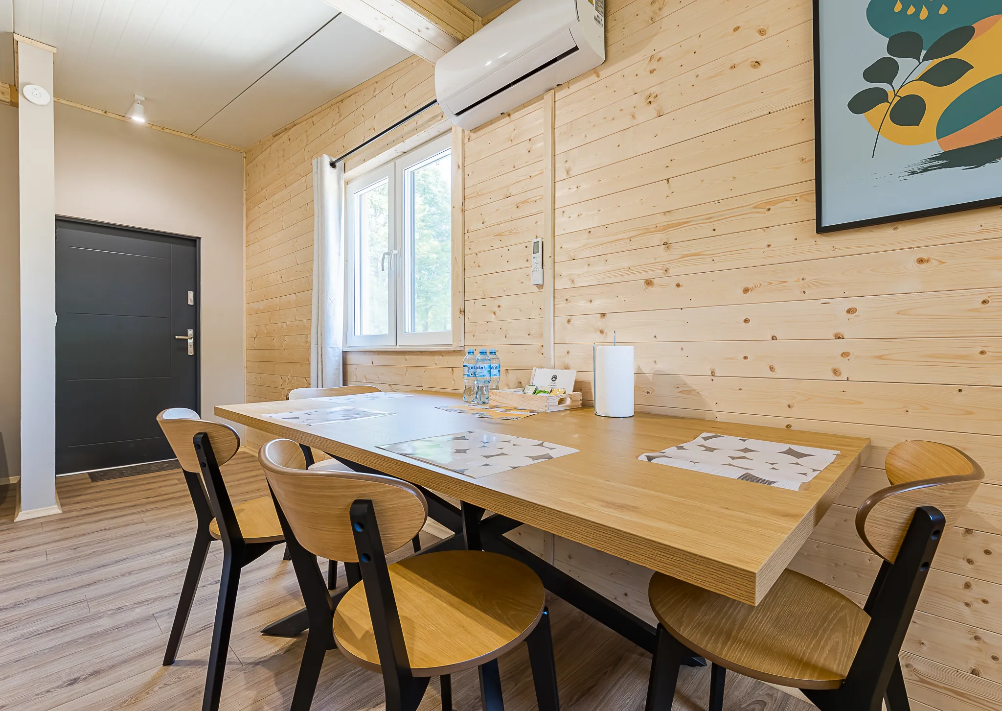 Domki położone są tuż przy potoku, wśród zieleni, oferują nie tylko bliskość przyrody, ale także komfortowe wnętrza i przestronne, drewniane tarasy. To idealna przestrzeń, aby zwolnić tempo, nabrać oddechu i cieszyć się chwilą.